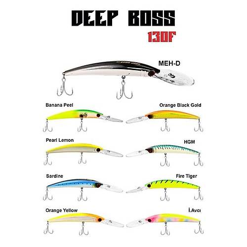 Fujin DeepBoss 130F, floating maket balık kategorisinde yer alan suni yemdir. Gerçekçi tasarımı ve dengeli yüzme aksiyonu ile avcı balıkları çeker. Shore ve tekne avlarında hem yüzey hem orta derinlik avları için yüksek performans sağlar.