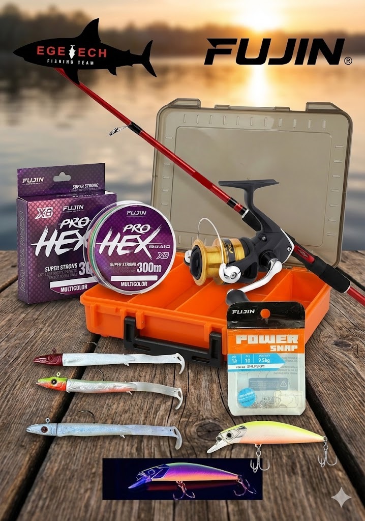 "Egetech Store özel spin seti ile avlanmaya hemen başlayın! Okuma Red Spin kamış, Shimano FX serisinin pürüzsüz çekiş gücüyle birleşiyor. 300 metrelik Fujin Pro Hex Multicolor ip ve maketlerinizi güvenle taşıyacağınız Shufa kutu ile eksiksiz bir kombinasyon."